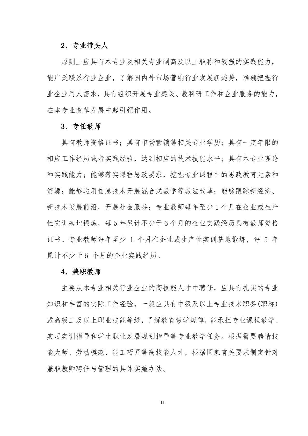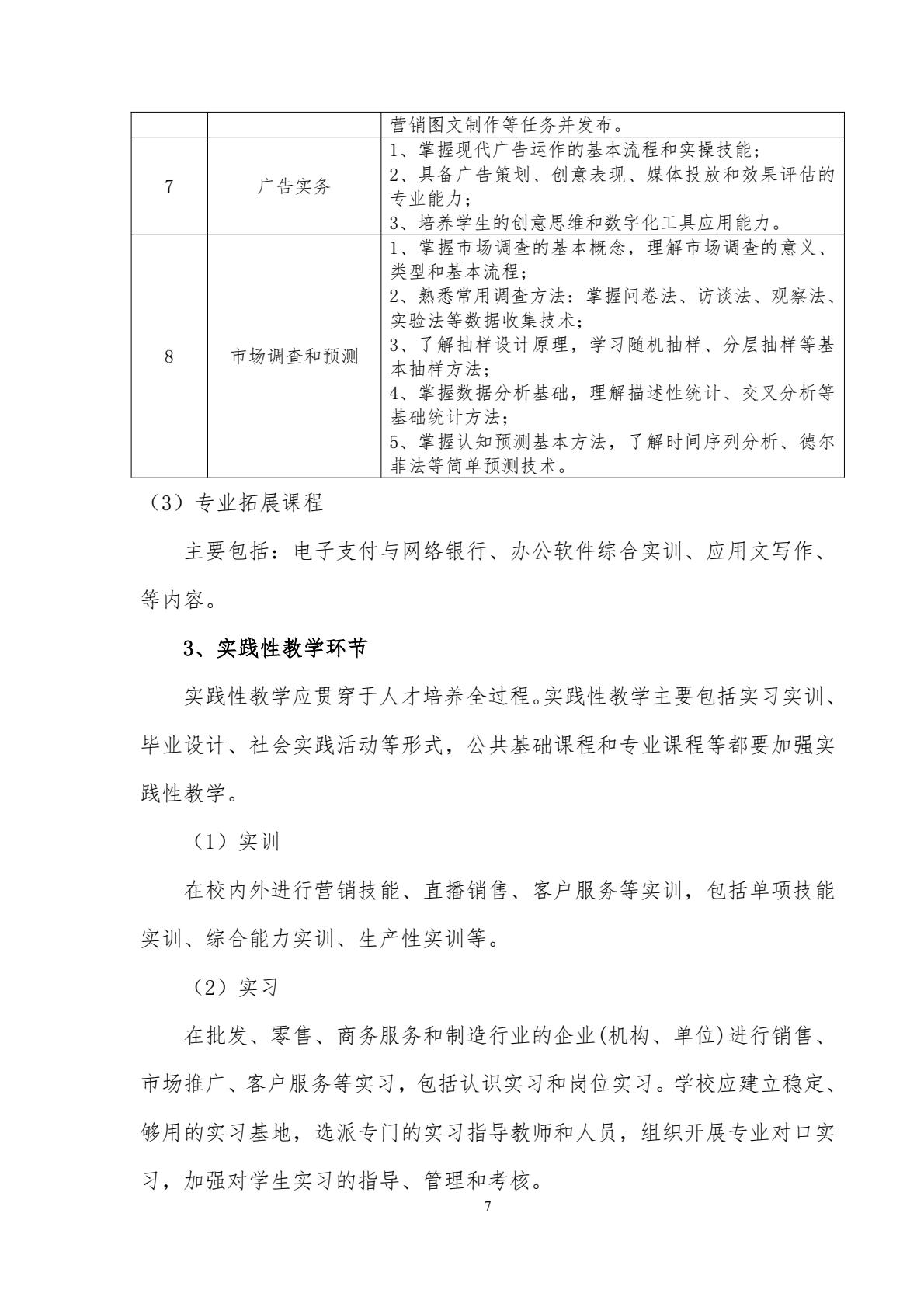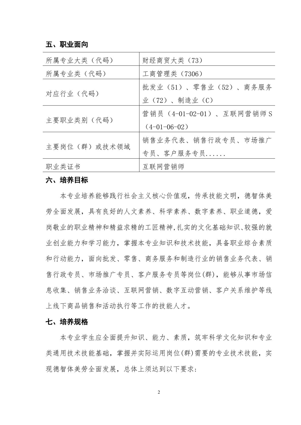 市场营销专业人才培养方案