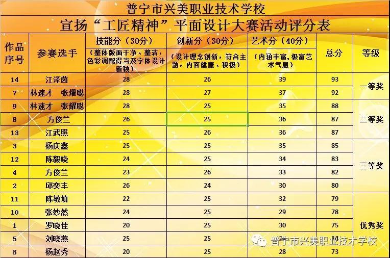 经过激烈角逐,来自17计算机平面设计1班的江泽茵个人、林速才和张燿聪团队以其天马行空的设计理念和突出的匠心意识从众多作品中脱颖而出,斩获一等奖;17计算机应用1班方俊兰等团队获二等奖;17电子商务2班杨庆鑫等团队荣获三等奖;17电子商务1班罗晓佳等团队获得优秀奖。